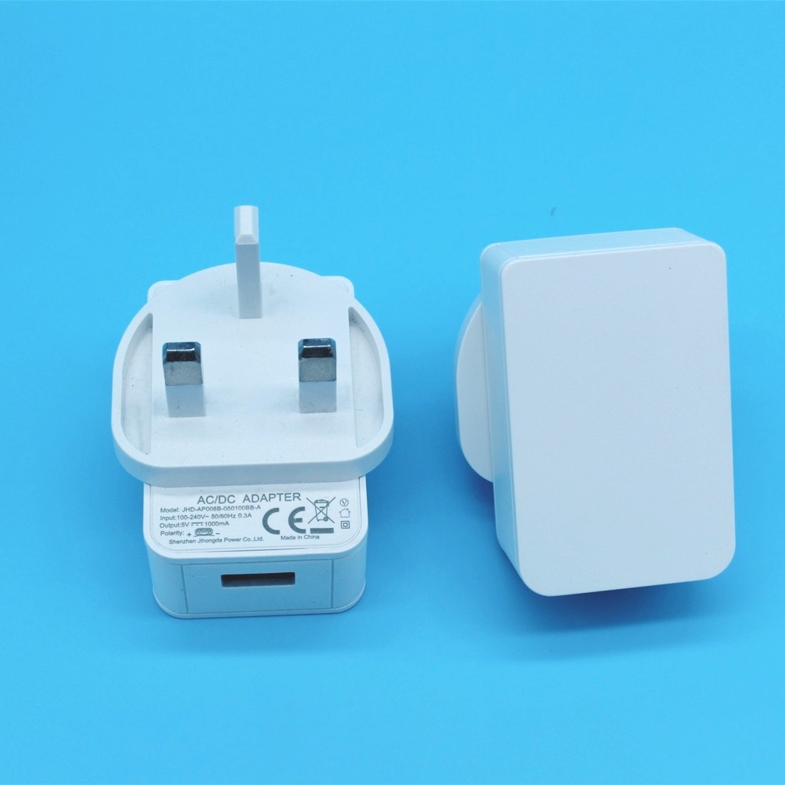 5V1A UK plug USB power adapter,Model: JHD-AP008B-050100BB-A, output 5 watts,high efficiency,low loss,built in EMC/EMI filter, Safety Approval: CE-EMC,CE-LVD. widely used in the electronic digital,communication.