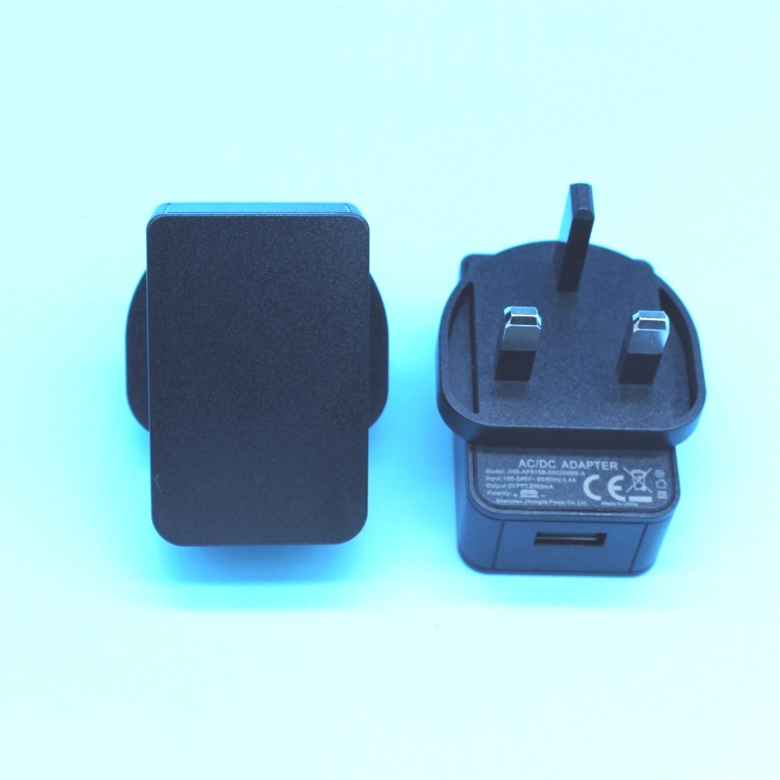 5V2A UK pin USB power adapter,5V2A UK plug USB charger; Model: JHD-AP015B-050200BB-A, output 10 watts,high efficiency,low loss,built in EMC/EMI filter, Safety Approval: CCC,PSE,UL,FCC,CB,GS-TUV,CE. widely used in the electronic digital,communication.